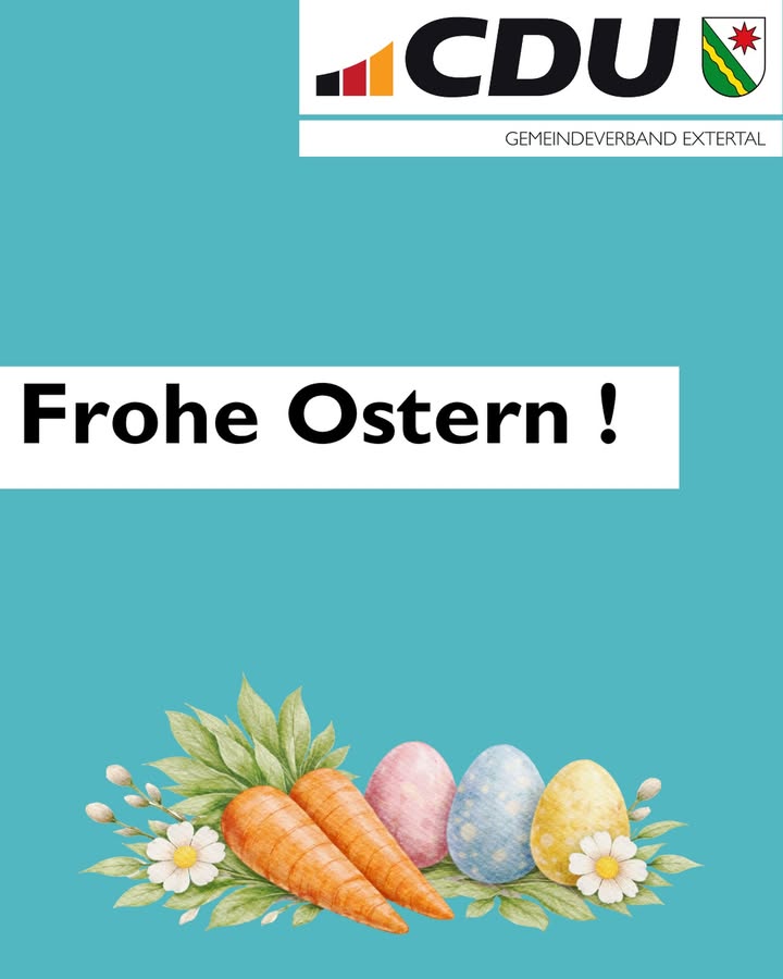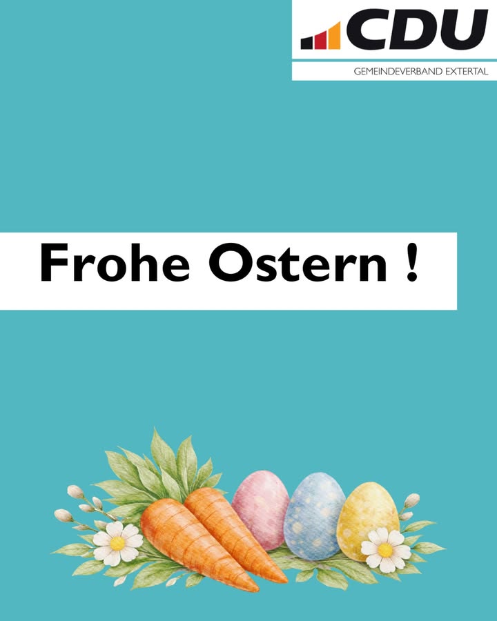mehr🐣🌷 Frohe Ostern wünscht die CDU Extertal!Genießen Sie die Feiertage im Kreise Ihrer Liebsten und tanken Sie neue Energie. 🌞Ihre CDU Extertal