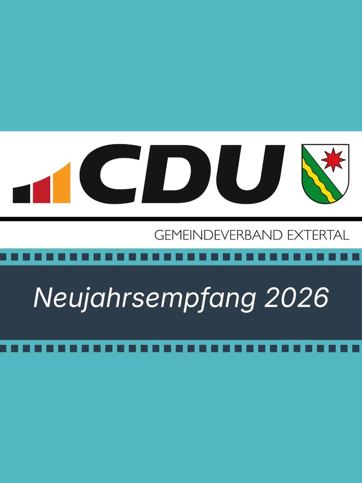 mehr🎉 Neujahrsempfang 2026 🎉Die CDU Gemeindeverband Extertal lädt herzlich ein!📅 12. März 2026📍 Sekundarschule Nordlippe🕡 Einlass 18:30 Uhr | Beginn 19:00 UhrMit Impulsen von👤 Generalmajor Andreas Henne👤 Bundestagsabgeordnete Kerstin ViereggeAustausch zu Sicherheit, Verantwortung & Zukunft ? anschließend Imbiss und Gespräche.👉 Anmeldung bis 05.03.2026Wir freuen uns auf Sie!